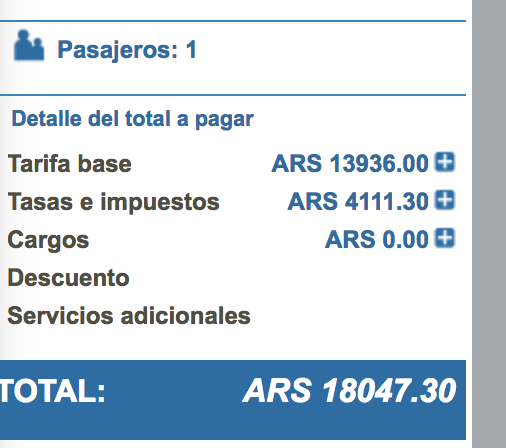 Vigencia de compra: desde las 00:00hs del 14/05/2018 hasta las 23:59hs del 16/05/2018. Cupos totales 100 plazas disponibles. Aplica descuento para menores de entre 2 y 11 años. Menores de 2 años abonan el 10% de tarifa de adulto y no ocupan asiento. Las tarifas no permiten devoluciones ni cancelaciones. No acumulable con otras promociones. Salidas desde el 06/08/2018 con viaje completo al 06/12/2018. No aplica para salidas el 17/08/2018, 18/08/2018, 12/10/2018, 13/10/2018, 16/11/2018 y 17/11/2018 y regresos el 20/08/2018, 21/08/2018, 15/10/2018, 16/10/2018, 19/11/2018 y 20/11/2018. Penalidad por cambios USD 150 (a tarifas de igual o superior valor). RBD: R. Aplica sólo en temporada baja. Estadía mínima 3 días o un domingo, máxima 45 días. Tarifas ida y vuelta expresadas en pesos argentinos, resultante de la conversión del dólar al tipo de cambio vendedor, divisa publicada por Banco Nación Argentina al cierre del día 10 de mayo de 2018. No permiten endosos, reembolsos, ni cambios de ruta. Válidas desde Argentina, en vuelos operados por Aerolíneas Argentinas en clase turista. Las tarifas incluyen cargo de combustible, DNT, impuestos, tasas. En caso de abonar con Pago Fácil se deberá agregar la alícuota del 5% adicional dispuesta por la resolución general 3819/2015 de la AFIP. Venta exclusiva en http://www.aerolineas.com.ar/hotsale.