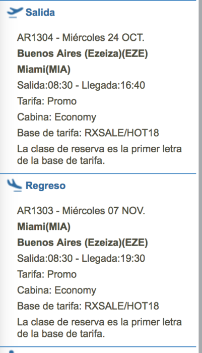Pero vean bien las condiciones que pego abajo, porque es claro en cuanto a las fechas. Por ejemplo lo de Miami es así