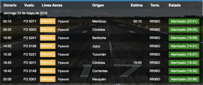 Hola Sir, en el link que te dejo, además de ver cada uno de los vuelos de Flybondi y el horario de arribo/partida, también podes ver la ocupación de los mismo. Saludos