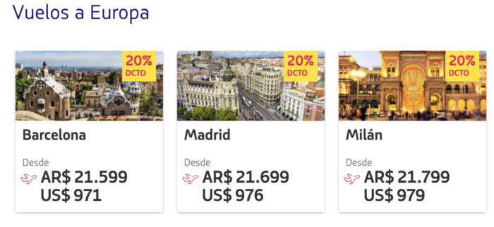 En tanto Europa está a menos de ARS 22.000 pero es de octubre a diciembre