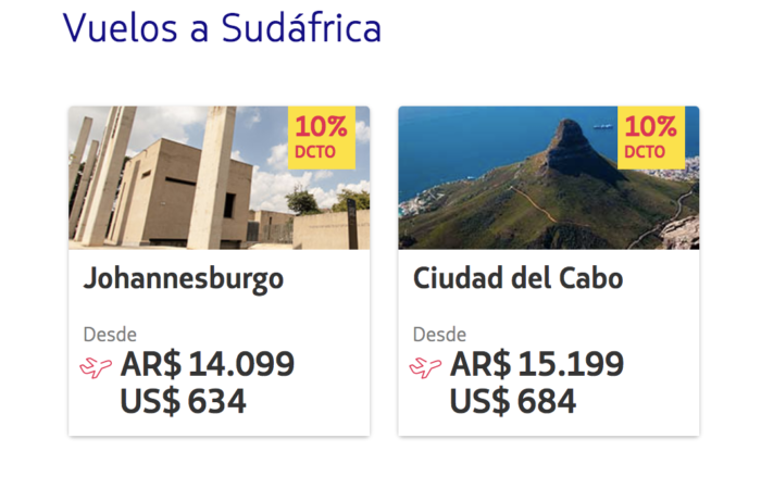 Sudáfrica es interesante porque ofrecen pasajes de junio a noviembre por menos de 15.000 a Johannesburgo y por un poco más a Ciudad del Cabo