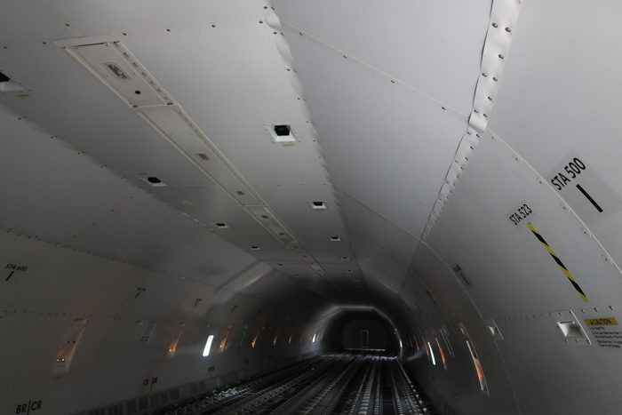 Había fuselajes de distintos anchos para las evacuaciones, una pileta, asientos de business y de turista, etc, etc