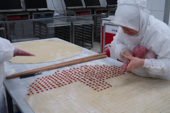 Y así pipón pipón pasé a la cocina. En el video se podrá ver por donde pasé, pero quizás en ese horario no había tanto movimiento. Si acá estaban armando una especie de ravioles, que son tradicionales en Turquía