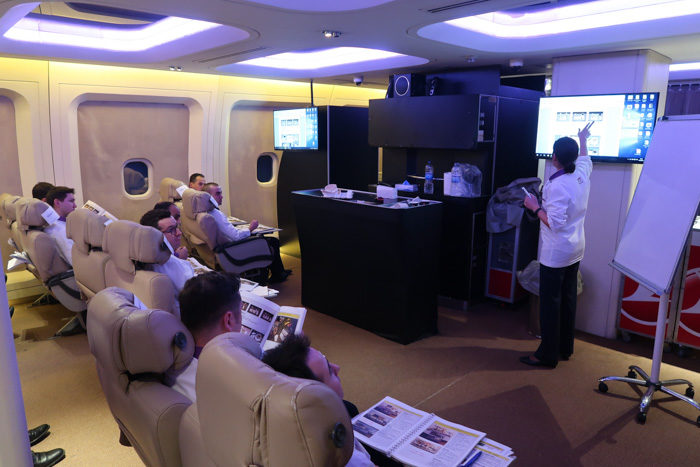 También en ese edificio estaban las capacitaciones en distintas aulas según el avión. En esta sala había varios chefs, porque Turkish lleva siempre uno o dos en business