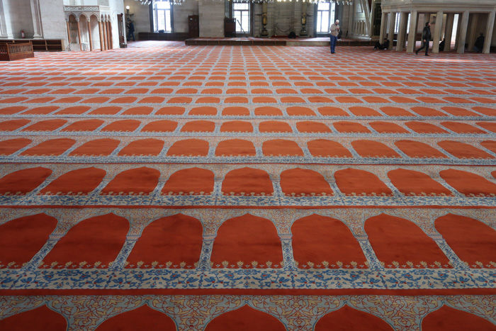 La alfombra con las posiciones para rezar apuntando a La meca obviamente