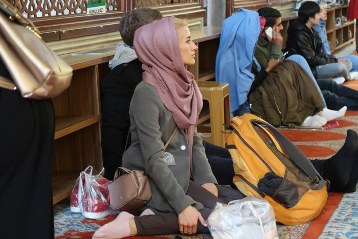 Las mujeres deben entrar con pañuelos, que se los proveen