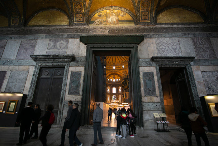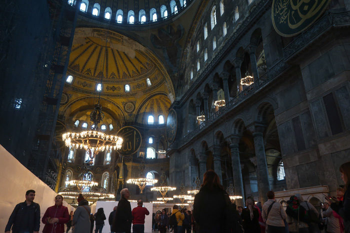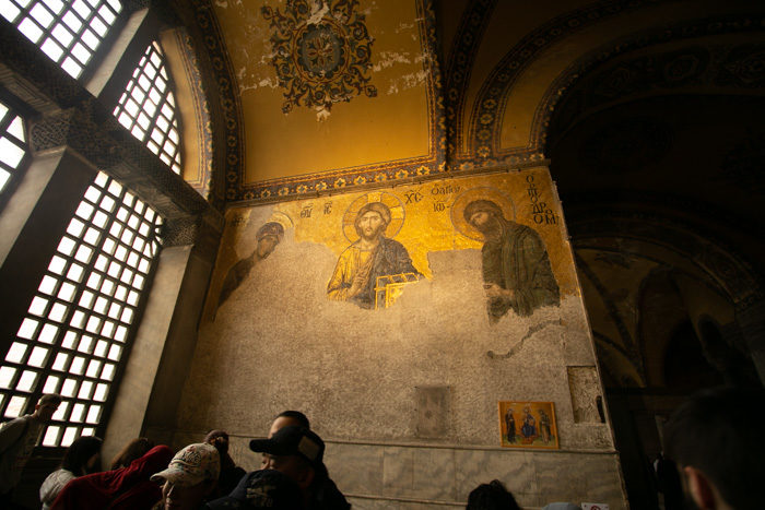 Ahí cerca, casi pegada está Santa Sofía, que actualmente es un museo, pero que paso de ser una iglesia ortodoxa a ser una mezquita, entonces le taparon, no destruyeron, algunos simbolos católicos.