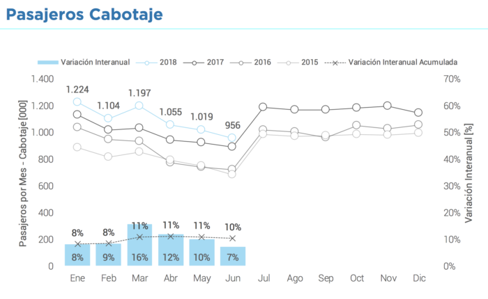 El acumulado del año lleva un 9% de crecimiento en internacional y un 10% en cabotaje.