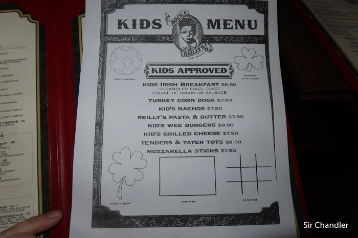El menú con las opciones infantiles. Lo mismo… 10 años y un costo de USD 7,95 con la bebida incluída