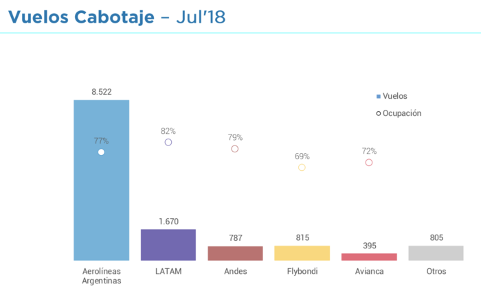 Aeroparque, Córdoba, Mendoza, Bariloche, Iguazú, Salta, Neuquén, Tucumán, Bahía Blanca, Rosario, Posadas, Formosa y Santiago del Estero registraron enjulio el máximo valor histórico en términos de pasajeros de cabotaje arribados a la terminal. Además, el 23 de julio hubo 50.700 pasajeros en vuelos de cabotaje, máximo historico de movimientos diarios.