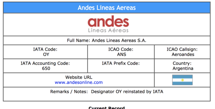 Andes es OY en el IATA y figura que deberían decir AEROANDES en la radio, pero dirían ANDES