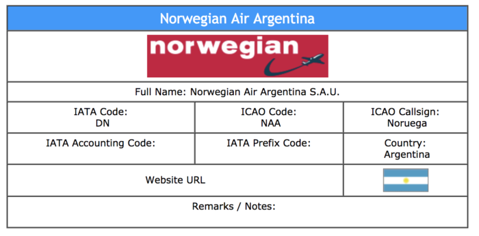 Pero lo que se puede ver ahora es que Norwegian Argentina ya tiene todos esos códigos también, DN para lo que veamos en los vuelos, tipo el DN2340 puede ser un vuelo a… ¿Córdoba?, el NAA (tipo nah) el de tres letras y su nombre para la torre es el «NORUEGA»