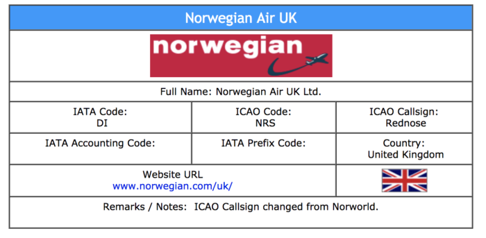 Pero cada filial tiene un código distinto, como por ejemplo acá está el del Reino Unido con DI del IATA y REDNOSE para la torre… aunque abajo dice que se cambió porque antes era NORWORLD. Habría que escuchar la radio de Ezeiza para ver como llaman cuando llegan o se van con su vuelo a Londres