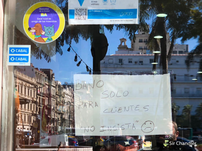 Con ese cartel a mano de que no se puede usar el baño sin ser cliente, se nota que el local es trucho…