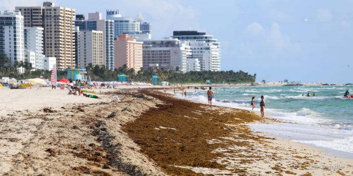 Muchas consultas sobre el sargazo en el Caribe. Ya puse un post de lo que vi en Playa del Carmen y ahora publico estas fotos que tomé ayer en Miami, en south beach