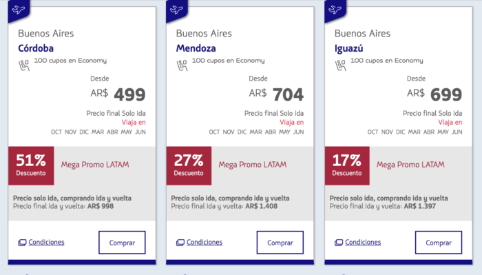 Y LATAM que lanzó ayer las ofertas «desde $499» para todos sus destinos nacionales comenzó a aplicar lo que contó hace algunas semanas con la tarifa promo, que no incluye equipaje ni millas.