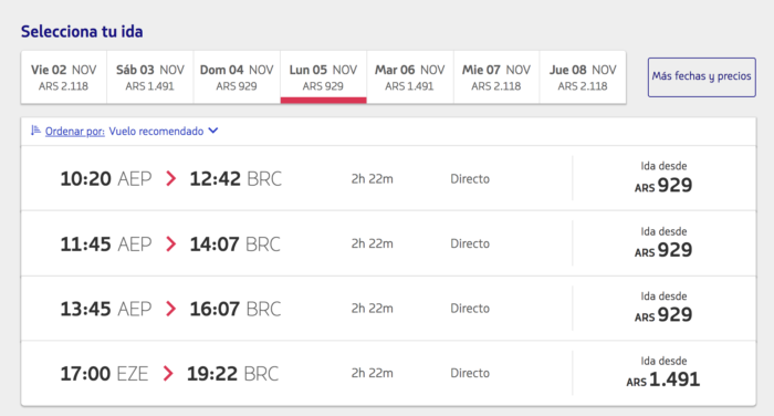 Bueno, acá en Bariloche se ve que desde Buenos Aires yendo el domingo 4, lunes 5 está esta tarifa.
