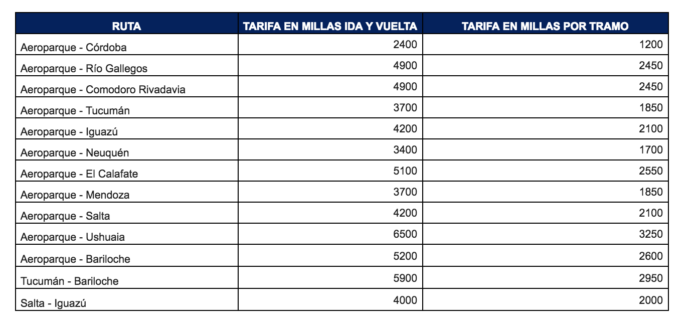 Que raro, calculé un brc-aep en fechas 5/11 y me tira 6200 millas, pero todas las demas rutas del cuadro inclusive en otras fechas y me tira mas 18.000 millas ambos tramos, muy distante de lo que dice la tabla