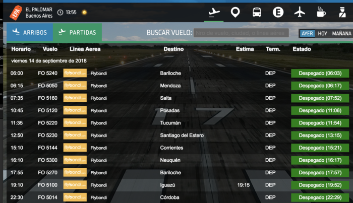Esto se puede ver diariamente en la web de AA2000 que registra partidas y arribos en El Palomar, aunque por el momento no muestran los vuelos que se quedan quietos en el aire tirando combustible como denunció una prestigiosa abogada de zona oeste (de la cual no hay peritajes siquiátricos aun)