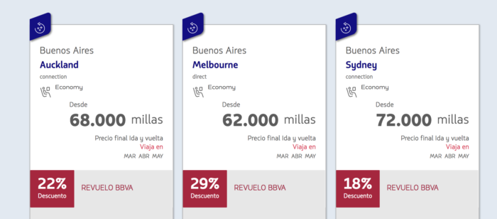 Y en el otro extremo hay casos de Europa y Oceanía desde 62.000 millas para Melbourne y lo de Europa desde 75.000 millas, pero en ese caso no es tanto el descuento como en los otros casos