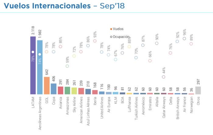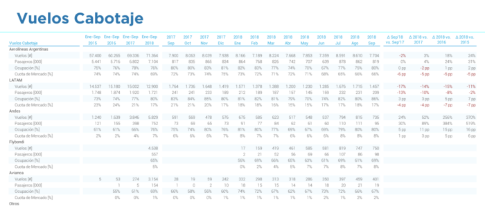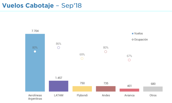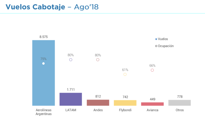 El primero del de cantidad de vuelos en cabotaje y la ocupación de cada aerolínea