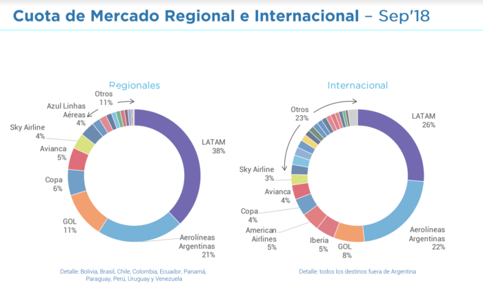 En el plano internacional los pasajeros descendieron un 4% también en relación al año pasado. Esto seguramente es mucho más fuerte por el lado de los emisivos pero se compensa con los que vienen al país, siendo que desde Chile y Brasil rápidamente están llenando aviones