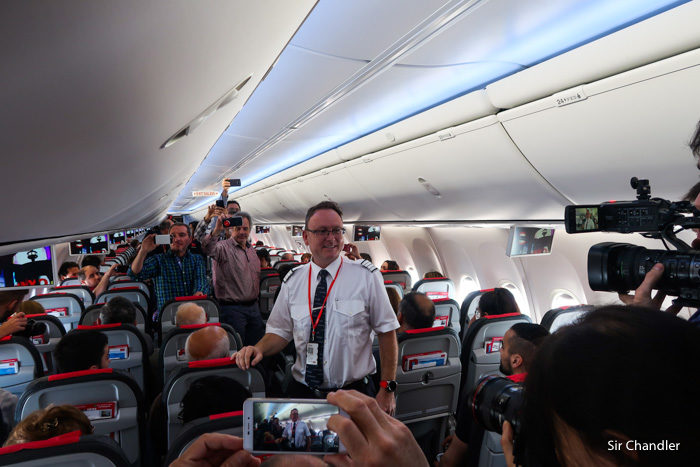 Y en el primer vuelo hicieron un anuncio de que premiarían al primer pasajero chequeado, por lo que el CEO le otorgó una maqueta de un 737