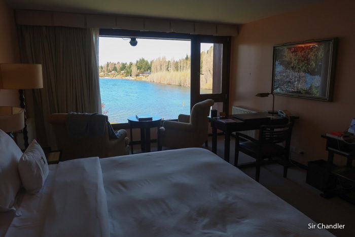 No es grande, tiene 33 habitaciones, de las cuales 31 dan al lago Nahuel Huapi. Esta era la vista que yo tenía