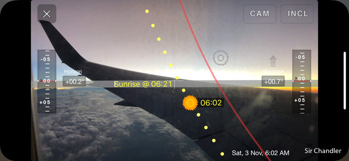 Y creo que la mencioné una vez, una app que me recomendó un lector, don Javier, que se llama Sunfollower que me dice a que hora sale el sol y a que hora se ocupa, más la posición que tiene siempre. Entonces con su visión en directo del lugar sin datos, me dice cuanto falta para que aparezca y por donde 😉