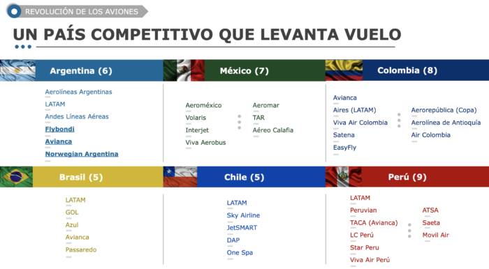 En referencia a Colombia yo agregaría a WINGO que tiene su porcentaje dentro del mercado cafetero.