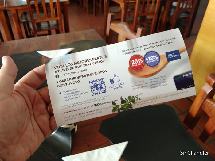 Es un evento gastronómico donde casi todos los restaurantes de Bariloche participan con descuentos y platos o menús especialmente preparados para el evento. Y como dice este papel que había en uno de ellos, se busca que se premie al mejor… lo cual es secundario creo dentro del evento en si.