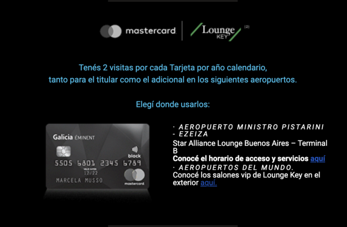 Hola!!! consulto si aún tiene disponible Galicia Eminent Visa o Master Black, el acceso a alguno de los salones vip en Ezeiza. No he encontrado información clara en internet, y desde el banco no me responden claro.