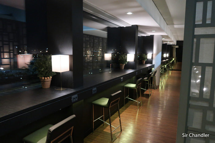 Y siguiendo por ahí hay mesas para poder trabajar. Unas dos horas después saqué una foto por ese ventanal justo antes de irnos para entender la ubicación