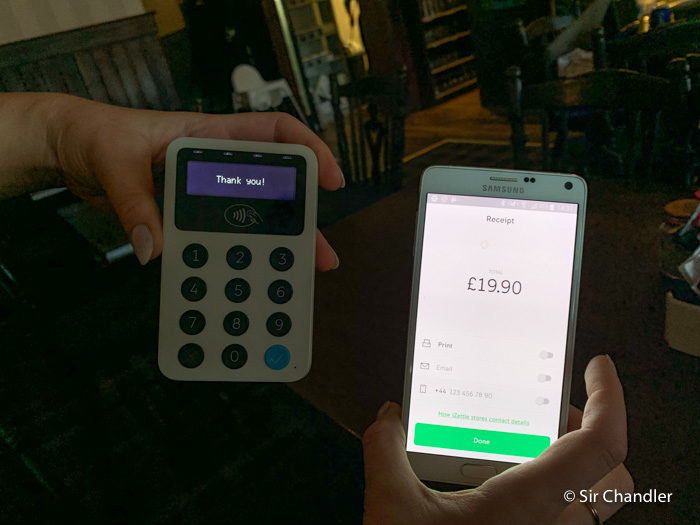 ¿Costo? 19,90 libras y cuando me vinierno a cobrar le pedí sacar una foto a la terminal! era eso de la izquierda que leyó mi tarjeta con chip (no usé contactless) y estaba comunicada inalámbricamente con un celular… me gusta ver esas cosas 😉