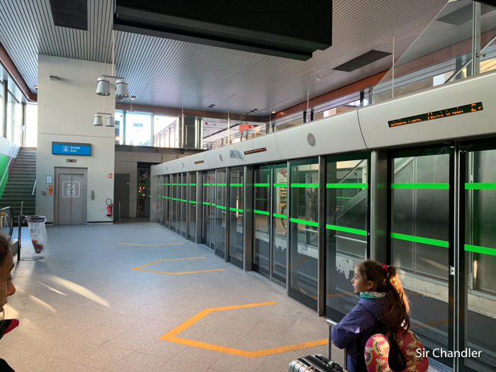 Pero llegamos… y tuvimos que hacer transbordo a un tren sin conductor porque el tren te deja en la terminal 2 y LATAM sale de la 1. Con este tren llegás.
