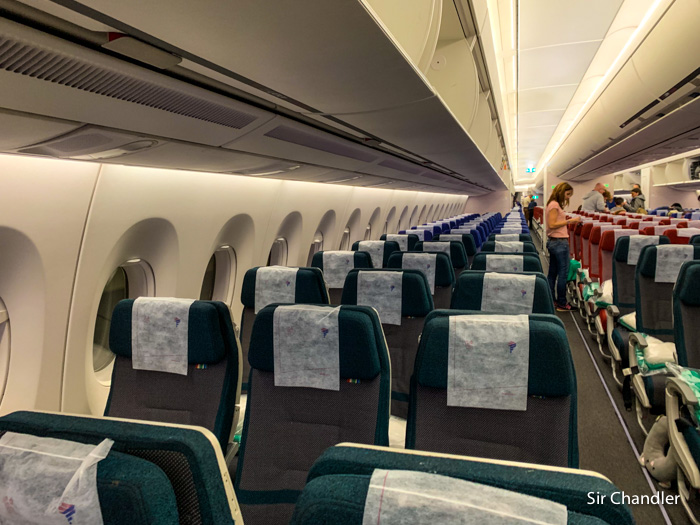 Las fotos las tomé rápidamente por eso hay poca gente. Pero calculo que business estaba el 70% y turista al 90%… lo aclaro porque en el video digo que estaba llenísimo y fue una errada percepción al comienzo.