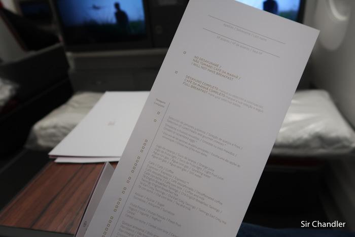 Estaba el menú en el asiento y también la hoja para completar para el desayuno antes de aterrizar