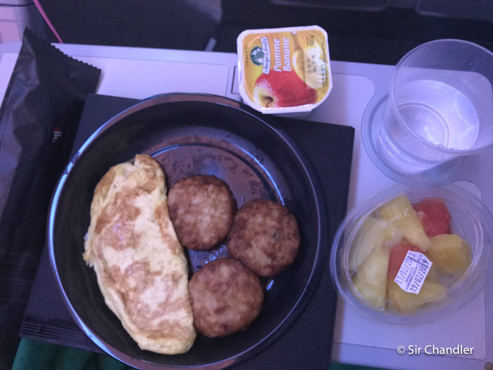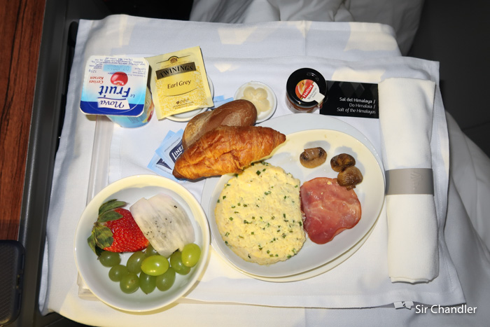 Era huevo revuelto en mi caso, frutas, un yogurt, pancito y croissant. Prefiero igual el omelette… esos estaban algo secos.