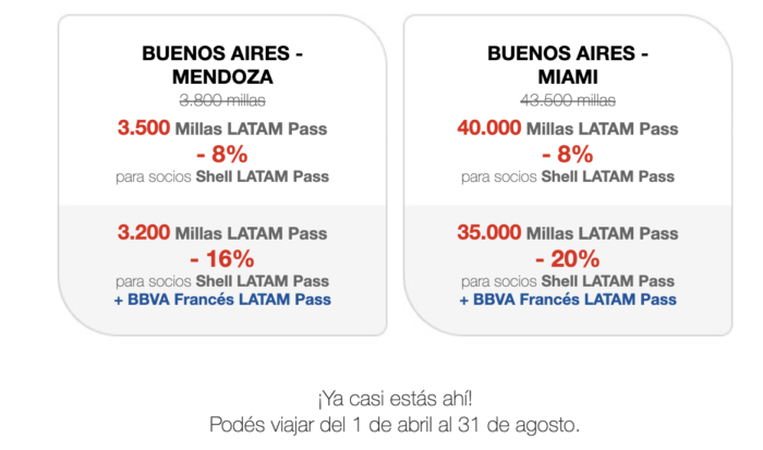 Salió nuevamente el canje Latam Pass con descuento para los que suman con Shell o BBVA, pero que si suman en los dos… hay mejores descuentos.
