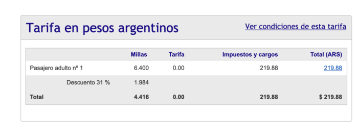Pero simulé el ida y vuelta y también toma el descuento y las tasas son de casi 220