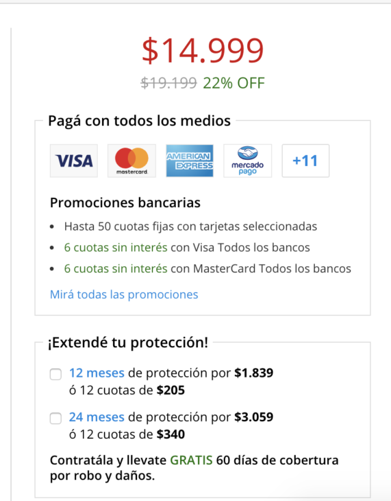 Si se puede verificar en la ficha de un lavarropas por ejemplo donde dice que cuesta $14.999