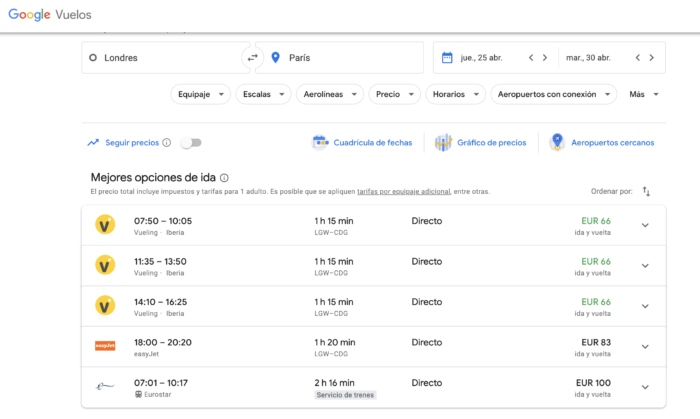 ¿Precio? bueno… eso es lo que tendrán que comparar siempre. Google Flights o Google Vuelos ya los mete en la comparación