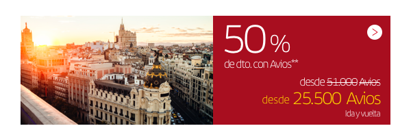 En vez de tener un «desde 51.000 avios» necesarios para un canje ida y vuelta a Madrid, ahora es desde 25.500. También es para reservar antes del 2 de abril