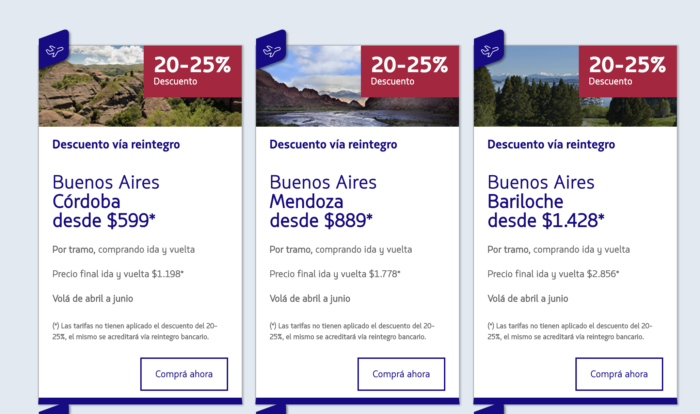 Yo creo que es si estabas por sacar un pasaje de cabotaje… acá tenés un reintegro. No se si es por armar un viaje de cero, creo que es bueno para comparar en este momento precios entre varias y ver si así conviene