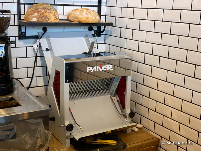 Pero lo particular del caso es que tienen la cortadora de pan que es muy común verla en los supermercados franceses. Y que son muchos los que se vuelven a sus provincias y se llevan el pan del día cortado