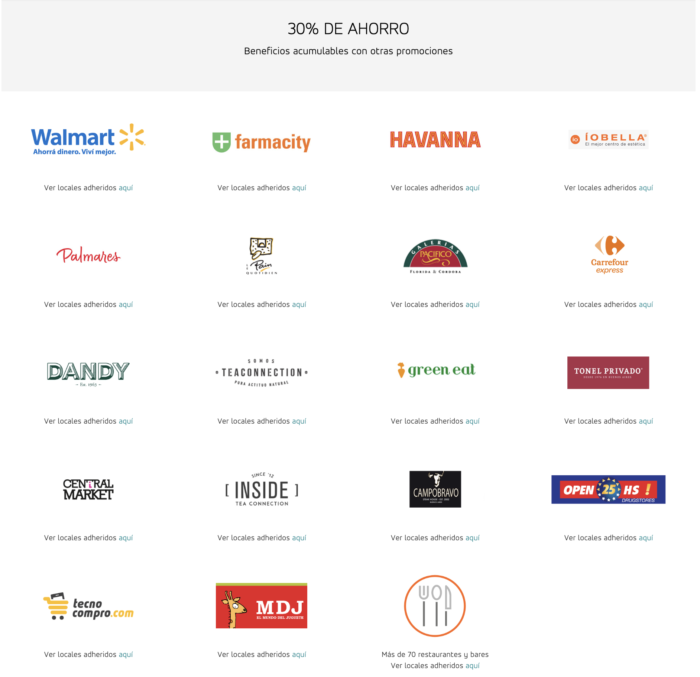 - Veo promociones con Córdoba (Carrefour Express), Mendoza (WalMart) o Santa Fe (los restaurantes)