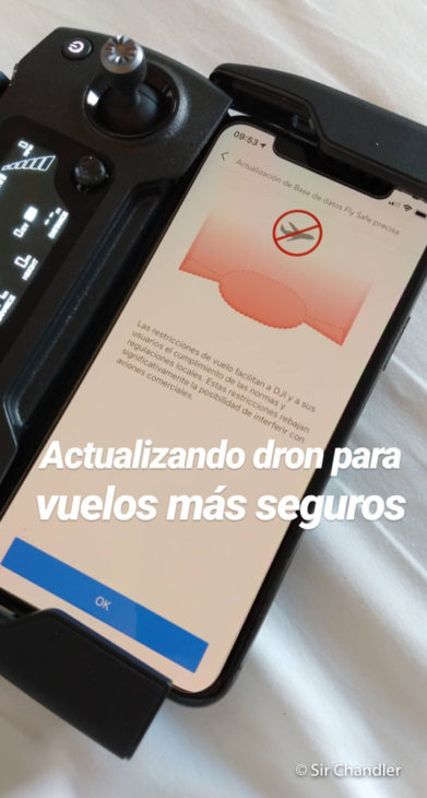 El sistema del dron, al menos en el DJI MAVIC PRO serie 1 que yo uso hace más de un año, periódicamente pide bajar nuevas zonas de restricciones, como así también la actualización del firmware. Justo puse ese momento en los stories de Instagram