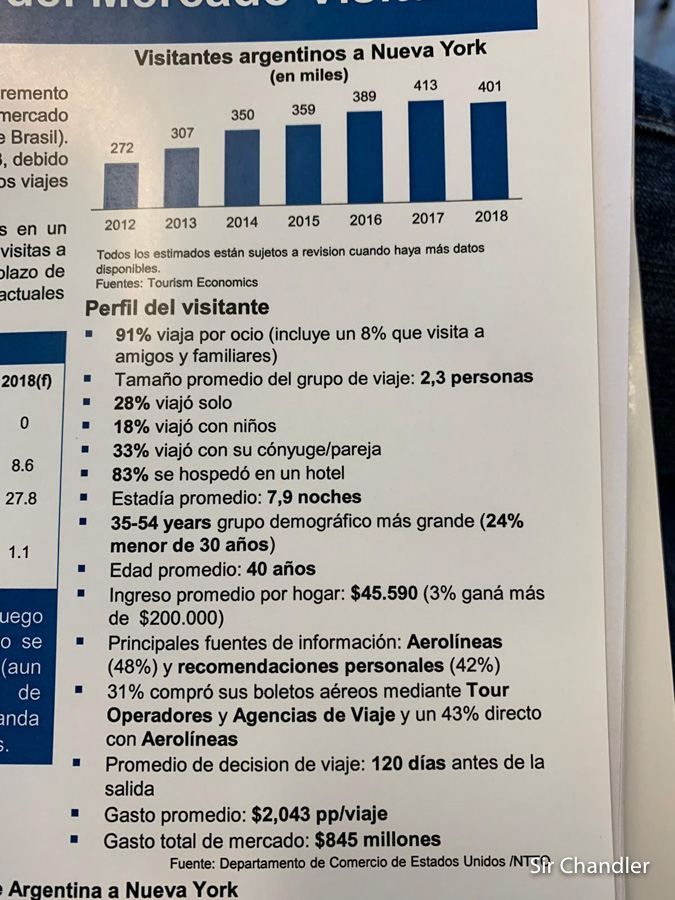 Muy interesante data. Muy de US hacer estadisticas de todo. En general viajo casi todos los años a NYC, tengo amigos en las cercanias. Suelo sacar por Latam Eze NYC, y desde alli hago algun tipo de tour por otras ciudades de US y de Canada. Muchos que solemos ir lo tomamos para conectarnos a otros lugares. Es cierto el hospedaje en NYC es caro, muchos se suelen hospedar en las cercanias tipo NJ o Queens, pero siempre encontras ofertas y es una zona que hau presupuestos para todos los bolsillos!!!