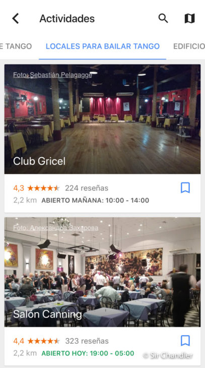Y cosas en particular de cada ciudad, como en este caso los lugares para bailar tango… y no por una publicidad hecha por vaya a saber quien, simplemente metieron esa categoría y ordenan según las calificaciones de los usuarios