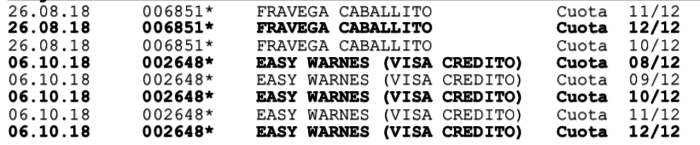 6) En el siguiente resumen, las cuotas me llegan con normalidad. Esto para estirarla 1 mes mas, y asi justificar que al momento de la renovacion tengo deudas.